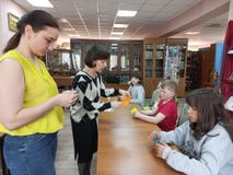 Затем все вспоминали особенности празднования Пасхи на Руси, которые живы и по сей день. Слушали и сами читали стихи русских поэтов о Пасхе, знакомились с выставкой пасхальных яиц, где были представлены сувенирные яички, сделанные своими руками, – деревянные, пластилиновые, из папье-маше, делились своими способами покраски яиц. В заключение все гости приняли участие в мастер-классе по изготовлению из цветной бумаги подставочки для пасхального яйца.