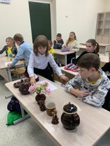 Послушав сказку о том, как комочек глины по имени Глинушек стал красивой вазой, ребята сначала поразмышляли над стихотворными загадками о керамической посуде, а затем изобразили её, умело используя пантомиму. Вниманию школьников были предложены и некоторые исторические факты о древнем промысле, и стихи о гончарах, и видеофильм об искусстве создания традиционных скопинских изделий.