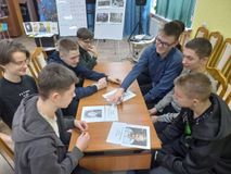 Участниками его стали восьмиклассники МКОУ СОШ № 3. Мероприятие проходило в конкурсном формате, для чего ребята разделились на две команды. На интерактивной доске было размещено игровое поле с секторами и звездами с номерами вопросов. Капитаны команд по очереди выбирали вопрос из секторов. Юноши и девушки охотно отвечали на вопросы ведущих Л.В. Девочкиной и А.С. Миловидовой по краеведению, о городах-героях, о заволжцах - Героях Советского Союза, по описанию определяли военную технику тех лет, а еще рассматривали картины художников-баталистов и определяли, какому событию посвящена та или иная картина.