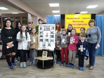 Также ребята приняли участие во флэшмобе «Животные – герои Великой Отечественной войны». Они познакомились с художественными и документальными книгами на эту тему, прочитали проникновенные стихи о животных-героях: собаках, кошках, лошадях, дельфинах, голубях, лосях и др.