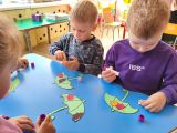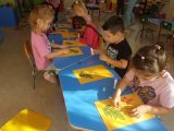 Ребята рассмотрели ветку рябины и увидели, какие у нее ягодки - дружные, растут одна возле другой, и постарались повторить это в аппликации, работали творчески, аккуратно.