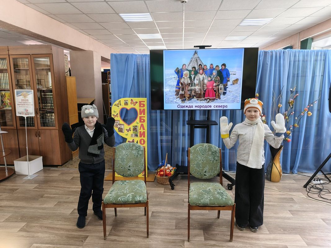 19 марта сотрудницы Заволжской библиотеки А.С. Миловидова и Л.В. Девочкина пригласили в гости лицеистов 2а класса и в рамках Года единства народов России провели для них этнопутешествие «Мы живем на Севере».