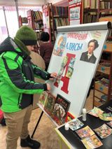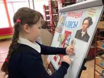 Флешмоб проходил в форме викторины. Юные читатели отвечали на вопросы по содержанию сказки, искали ответы среди разноцветных иллюстраций, а затем наклеивали их на большую букву А, с которой начинается имя девочки. Ребята порадовали знанием произведения: им знакомы герои - фантазерка девочка Алиса, улыбающийся Чеширский кот, аккуратист Белый кролик, Злая королева, вальяжная Синяя гусеница, сумасшедший Мартовский заяц и многие другие. Дети вспоминали невероятные истории, случившиеся с Алисой, смеялись над забавными фразами: от уксуса - куксятся, от горчицы - огорчаются, от лука – лукавят. Они вспомнили, что в школе Кэрролла есть грязнописание и звательный падеж, а образование называется классическим, потому что дети там целый день играют в классики.