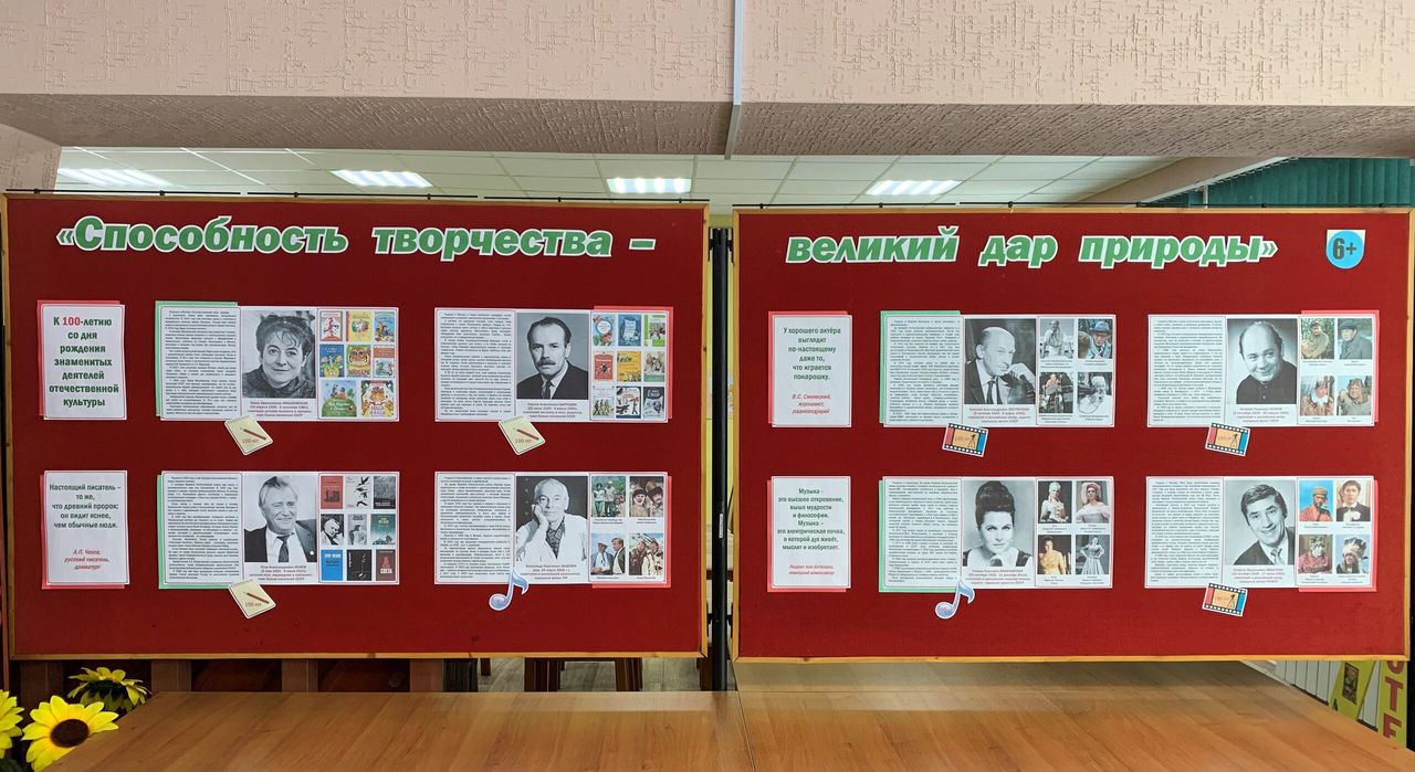 В 2026 году мы отмечаем столетние юбилеи известных деятелей отечественной культуры: писателей и поэтов, артистов и композиторов. Именно им посвящён информационно-иллюстративный стенд в читальном зале, коротко, но интересно рассказывающий о жизни и творчестве Сергея Баруздина и Эммы Мошковской, Егора Исаева и Александра Зацепина, Евгения Евстигнеева и Спартака Мишулина, Евгения Леонова и Галины Вишневской.